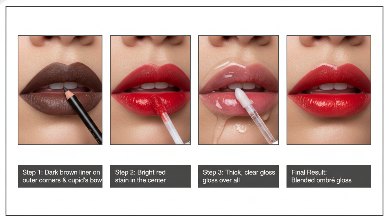 - The ‘3-Layer Architecture’: This look fails without the specific sequence of brown liner, red stain, and clear/tinted gloss.