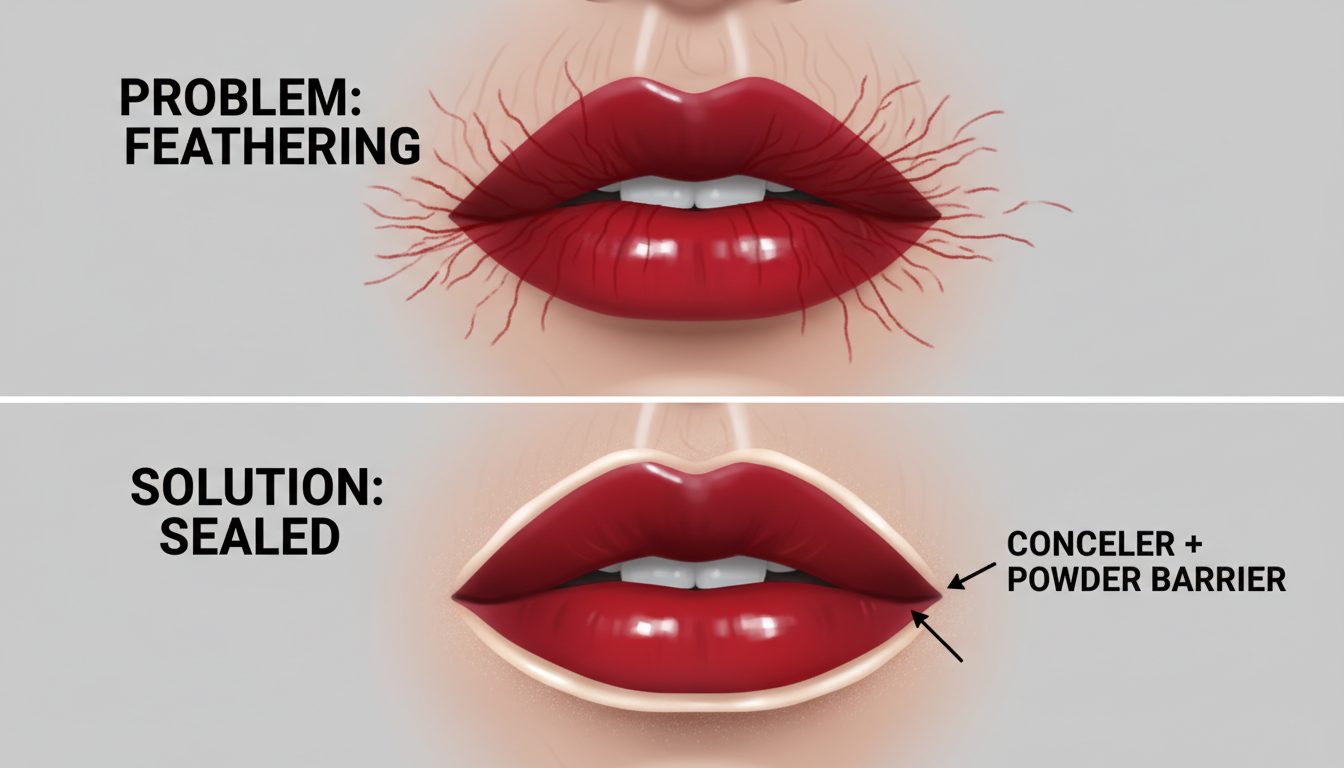 The Invisible Barrier: Use a clear waxy lip liner or a tiny amount of translucent setting powder just outside* the natural lip line before applying color.