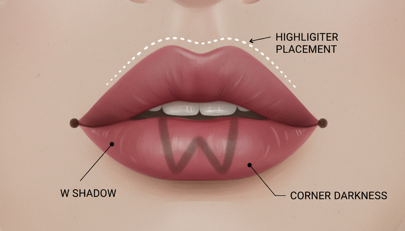 Instead of just gloss, take a tiny amount of liquid champagne highlighter. Dab it strictly on the vermilion border of the cupid’s bow (the ridge). This catches the light before the gloss does, adding a double-reflection that enhances the 3D effect.