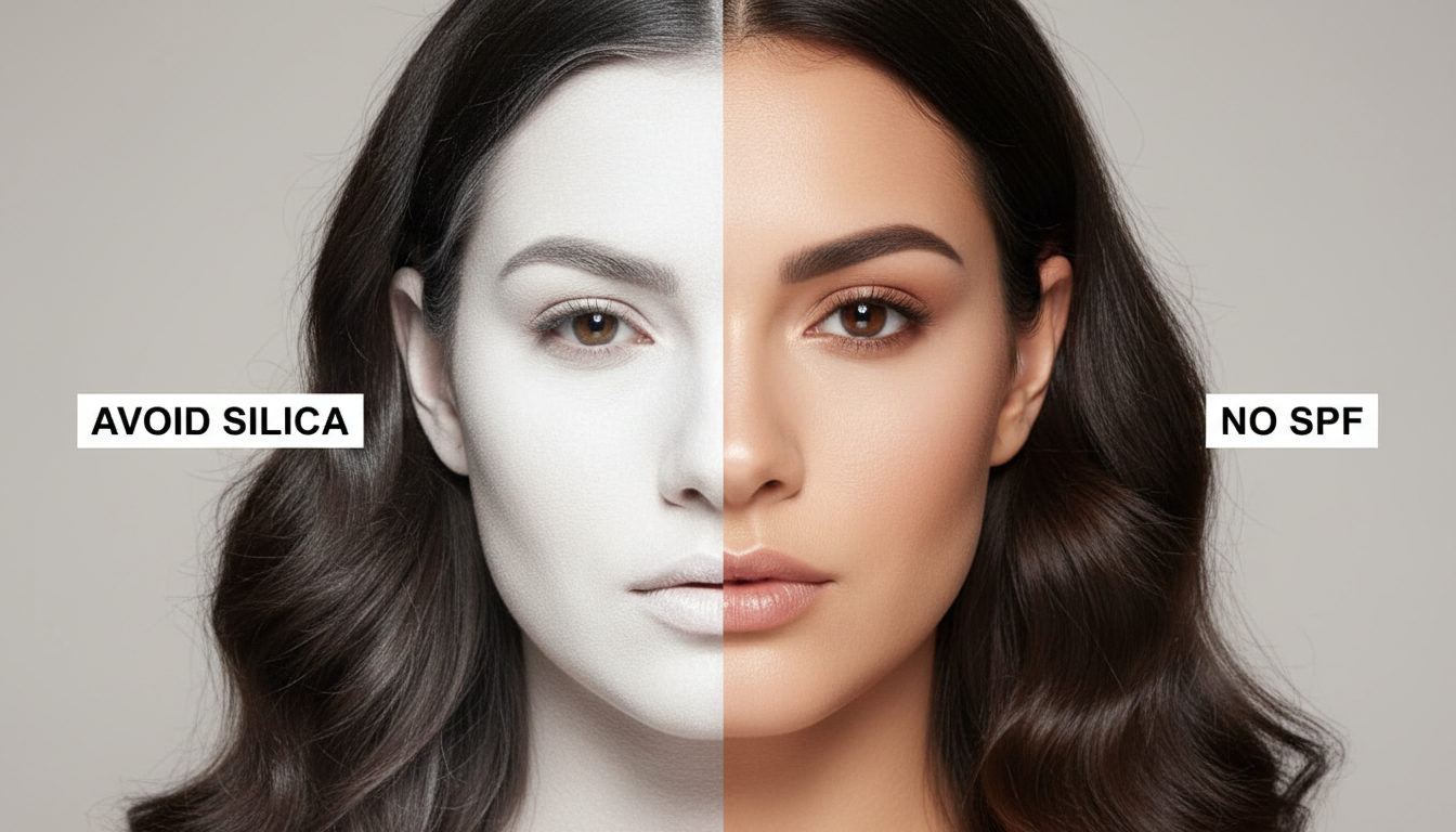 - Flash Photography Safety: Avoid HD powders with silica to prevent ‘ghost face’ flashback in holiday photos.