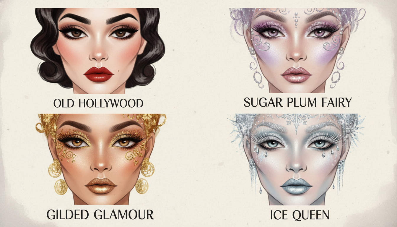 Here is your cheat sheet for the four distinct archetypes of Christmas makeup. Choose the one that fits your outfit and vibe.