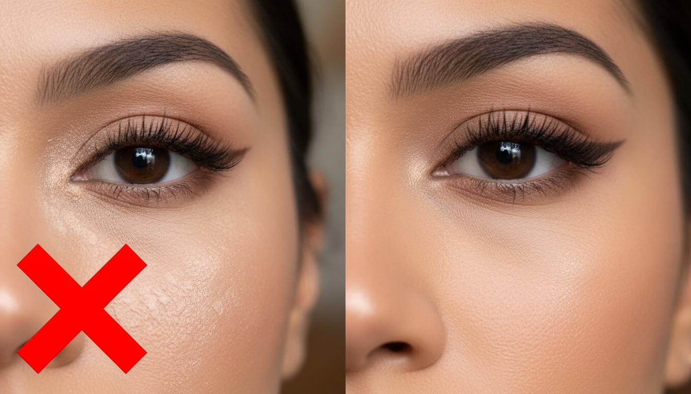 1. Dehydration: The heavy powder sucks moisture from the delicate under-eye area, exacerbating fine lines instantly.