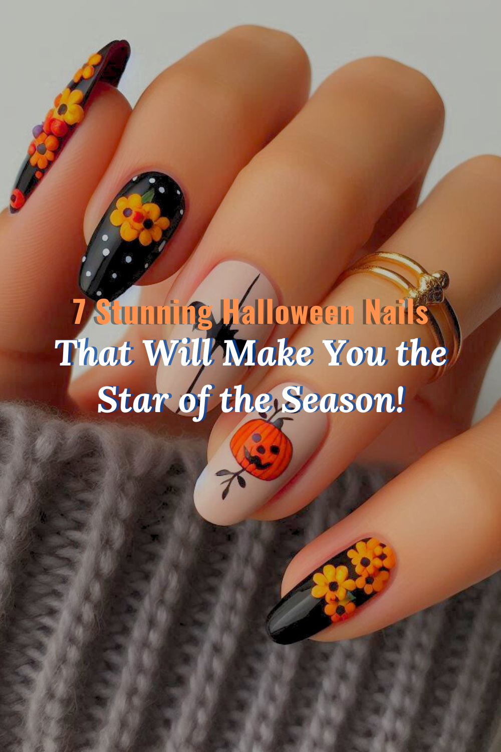 Celebrate Halloween with cute pumpkin designs. Paint small pumpkins on your nails with orange, green, and black hues for an adorable look.