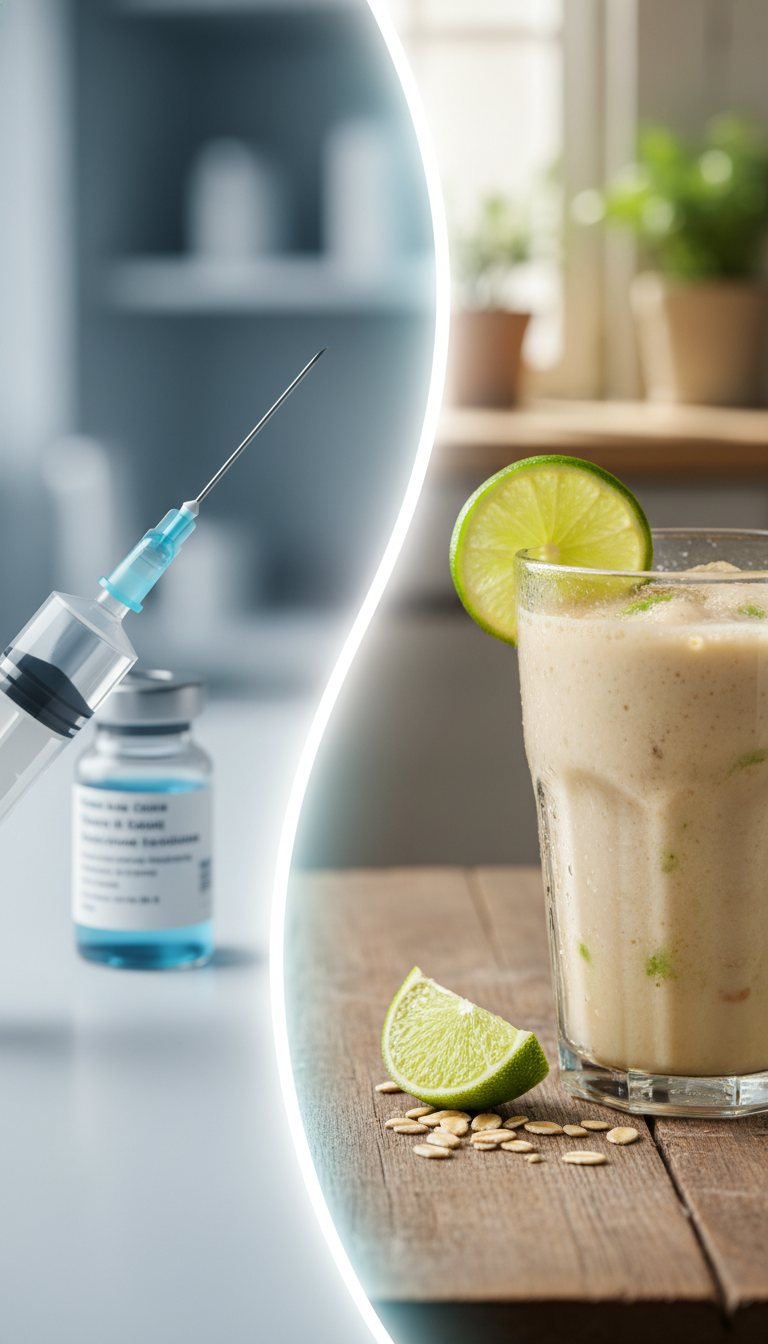 Blend 1/2 cup rolled oats, 1 cup water, and juice of half a lime until smooth. Drink daily for a satiating, fiber-rich boost.